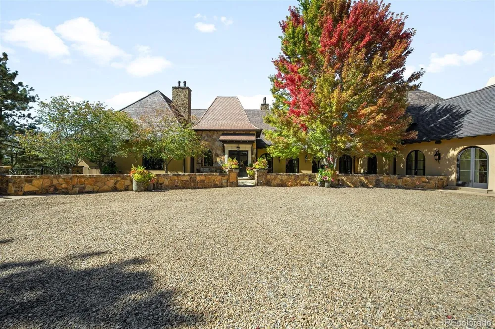 Perched along the 8th green of the exclusive Castle Pines Golf Course, One Elk Pointe embodies timeless sophistication andEuropean-inspired living. A graceful stone bridge and porte-cochère lead you to this elegant estate, where every detail hasbeen curated for those who appreciate craftsmanship, comfort, and quiet grandeur. Inside, sunlight spills across soaringceilings, exposed beams, and hand-laid tile floors. Walls of glass frame sweeping golf course and mountain vistas, creating a seamless connection between indoor elegance and outdoor serenity. At the heart of the home, an exceptional chef’s kitchen delights with dual islands, a farmhouse sink, and top-tier appliances from Sub-Zero, Wolf, La Cornue, and Thermador. A hidden refrigerator, butler’s pantry, and wine area enhance the home’s effortless luxury, while a cozy hearthdining room invites intimate gatherings beneath cathedral ceilings. The formal living and dining rooms span 36 feet, anchored by twin limestone fireplaces and opening to an expansive upper deck where a stone fireplace and treetop views offer an enchanting backdrop for evening soirées. The main-floor primary suite defines refined tranquility—featuring a limestone fireplace, spa-inspired bath, dual vanities, soaking tub, and two custom closets. Two exquisite offices and a marble-topped mudroom blend practicality with polish. The lower level is designed for leisure and connection, offering a full bar, spacious entertaining area, gym with steam shower, and three en-suite bedrooms. Outdoors, multiple terraces invite alfresco living—a see-through fireplace, built-in grill, fire pit, and sunken hot tub all set against the dramatic beautyof Castle Pines. A rare harmony of European elegance and Colorado majesty, One Elk Pointe is more than a residence—it’sa lifestyle without compromise.