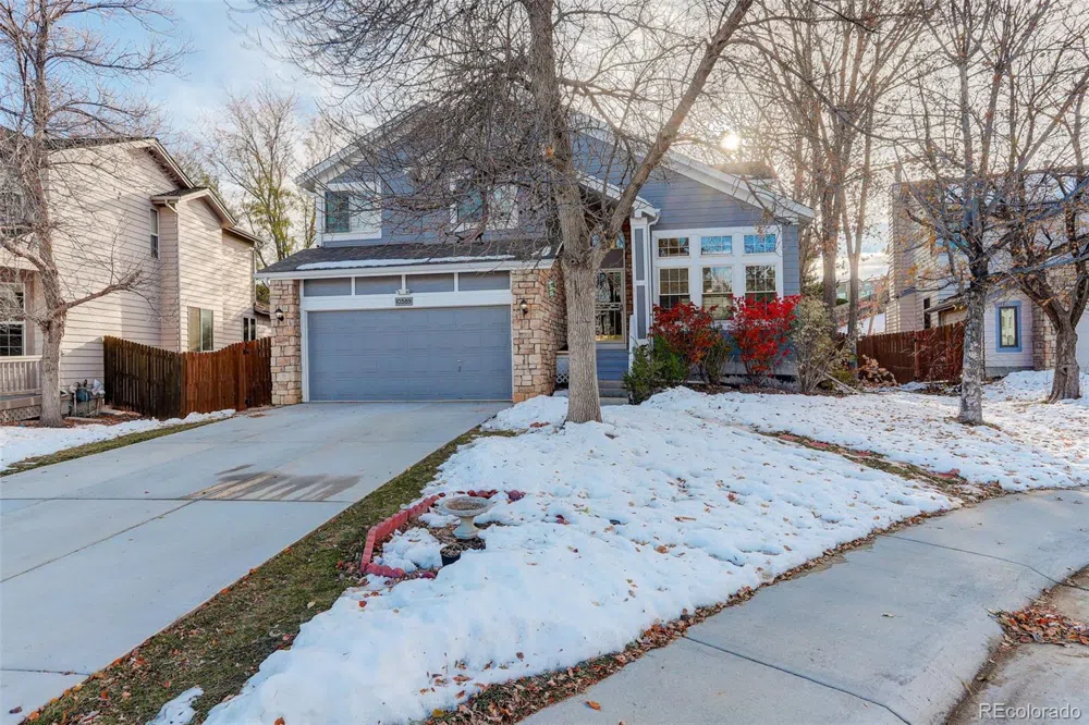Welcome to the Stonegate Community! This beautiful 5 bed 4 bath home perfect for anyone wanting versatile living space awaits you! You will enter a warm sunfilled Great Room open to a Dining space that is perfect for casual family time or for entertaining guests. An updated kitchen featuring granite counters, and stainless steel appliances, and new flooring overlooks a cozy family room with built-in bookshelves and a lovely warm gas fireplace. Take your casual time outside on an oversized low maintenance covered Trex deck accessible from either the kitchen or family room! The split backyard is one of the largest lots in Stonegate, and is ideal for pet lovers. Upstairs you will find a lovely and private primary suite with a 5 piece bath including a huge soaking tub, dual sink vanity, private water closet and a large walk in closet. Any of the 3 additional upstairs bedrooms could easily be used as office space, and have access to an upgraded full bathroom. The finished basement is a perfect bonus space for multi-generation separation with a 3/4 bath, or could be uses as a 5th bedroom. Love where you live in sought after Stonegate, offering country club like amenities including multiple pools, tennis, pickle ball, close to parks and miles of trials. You can enjoy access to the Adult pool/spa year round! Low HOA fee of $200 per year! Location is a commuters dream just off E470 and I25 with great access to local schools, shopping, dining, entertainment, minutes to a light rail station, 25 minutes to DIA, and 10 minutes to Park Meadows. A new roof installed April 2024 with Class 4 wind impact shingles provides a home insurance discount! New Driveway! New Flooring throughout! Motivated Seller will transfer the home warranty valid to April 2026! Don't miss out on this gem of a home priced to sell.