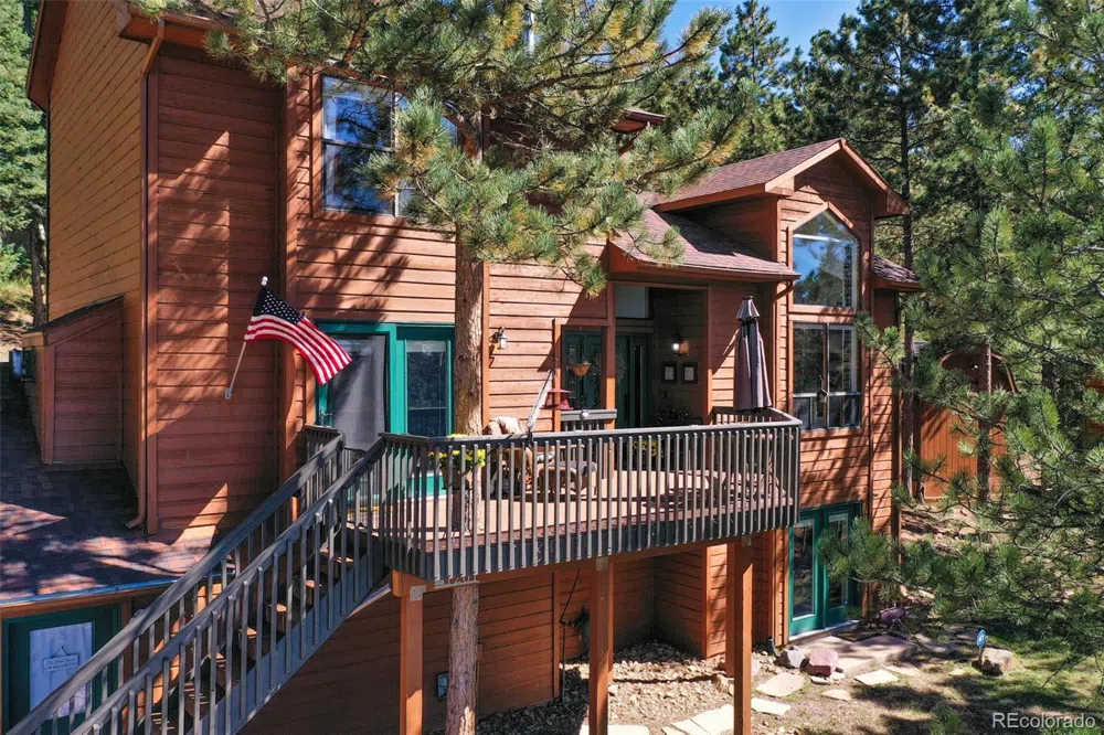 Don’t miss this rare opportunity to own a meticulously maintained mountain home with breathtaking, never-ending views of the Rocky Mountains and foothills, perfectly perched to enjoy the beauty of looking out over Woodland Park, Colorado. This stunning property is situated in a peaceful, quiet neighborhood with local traffic only, offering the perfect balance of privacy and community. Nestled among towering pines and aspens, the home is beautifully decorated and fully updated—ready for you to move in and embrace the tranquility of small mountain town living. The expansive deck provides the perfect spot to take in the expansive views, while the interior boasts new or like-new finishes throughout. Step inside to find dark oak floors, a cozy fireplace (Highlands Ledgestone rock quarried in Telluride, CO, and "live" edge mantle from local lumber mill), and a gorgeous staircase that adds a touch of elegance. The updated kitchen opens to a family room with gas fireplace and walk-out to the deck, creating the ideal space for gathering. Upstairs, the master suite is a true retreat, complete with a sitting nook, luxurious 5-piece bath, and convenience of his-and-hers walk-in closets. The downstairs level offers a private living space with a Murphy bed that appears as a lovely piece of furniture and its own bath, breakfast bar, and outside access—perfect for guests or multi-generational living. HOME IS BEING SOLD FULLY FURNISHED AND DECORATED!! Located just blocks from schools, shopping, entertainment, and hiking, this home offers the convenience of town living while being just a short drive to fishing, skiing, hunting, and all your favorite outdoor adventures. Peace, comfort, and adventure await you in this move-in-ready mountain oasis!