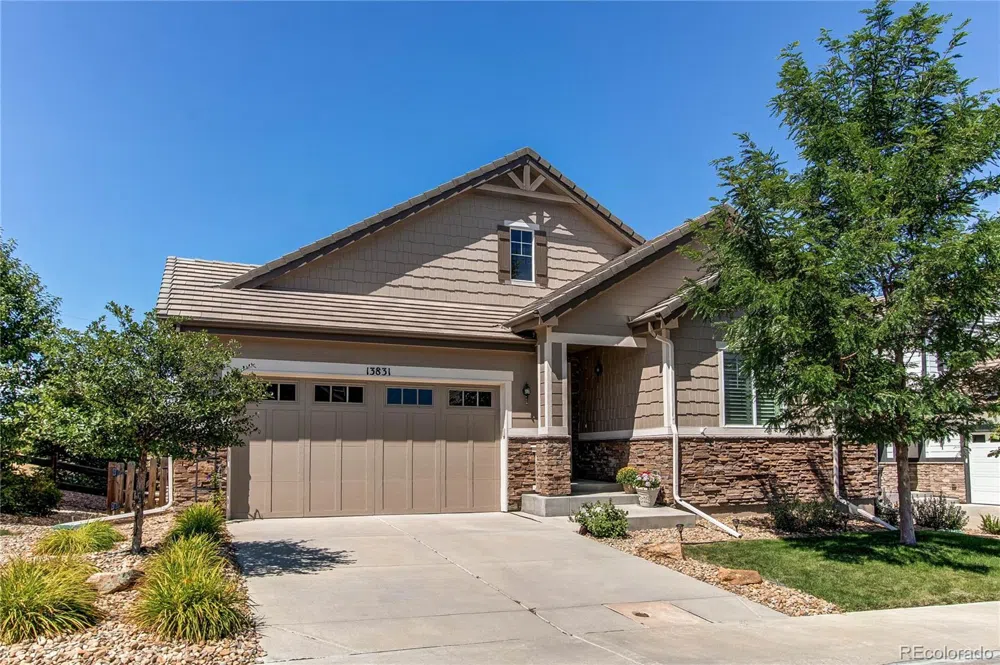 Welcome to an exceptional ranch home in Meridian Village with a main floor owners suite and open floor plan, backing to open space* Large windows fill the home with natural light*Plantation shutters throughout*Gracious entry*Spacious kitchen, beautifully appointed w/slab granite countertops, stainless steel appl., double wall oven, 5-burner gas range, center island, crown-molding topped cabinets, pull-out drawers, sideboard with extra storage, and oversized walk-in pantry*Ceiling fans in all bedrooms and living area*Owners suite incl bay window, tray ceiling w/crown molding, new carpet, luxuious 5-piece bath w/soaking tub, dual vanities and walk in closet* Additional two bedrooms have a walk-in closet and share a full hall bath* Kitchen flows to great room w/stacked stone gas fireplace, and is wired for surround sound*Formal dining room adjoins the kitchen and boasts a tray ceiling with crown molding, *Kitchen eating area is steps from sliding glass doors with plantation shutters out to deck*Unfinished, insulated basement with 5 large windows to let sunlight in, has rough-in plumbing, electricity and 10 outlets added, new furnace in 2022, great storage*Enjoy the privacy on the west facing trex deck looking out to open space*Two large garden beds in the fenced xeriscaped back yard*Home exterior painted in July of 2024*Interior repainted*Neighborhood has miles of walking paths and a community pool to enjoy*Listing of home improvements available*Agent Owner.