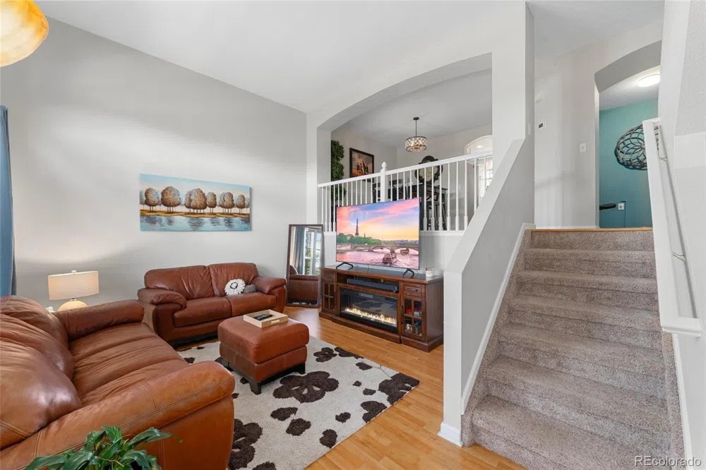 Lovely townhome nestled in the well-maintained Red Hawk community of Castle Rock! With trails right outside your front door, this home offers the perfect blend of convenience and nature. Step inside and find a spacious living room featuring modern laminate flooring and high ceilings that create a bright and inviting atmosphere. A few steps up, you’ll find the formal dining space and the beautiful kitchen equipped with stainless steel appliances, granite countertops, and a new subway tile backsplash. This level also includes a dedicated home office with a built-in desk and cabinetry, as well as a half bathroom for guests. Upstairs, the generously sized primary suite boasts a walk-in closet and an ensuite bathroom for your comfort and privacy. Two additional bedrooms share a full bathroom. Additional features include an attached two-car garage and a charming fenced front yard, perfect for outdoor relaxation. Enjoy stunning views of the city lights at night and catch the 4th of July fireworks right outside your home. You’ll love the soothing sound of water rushing from the retention pond across the way, and the community pet waste areas make it a pet-friendly environment. Don’t miss your chance to own this beautiful townhome in a vibrant community!