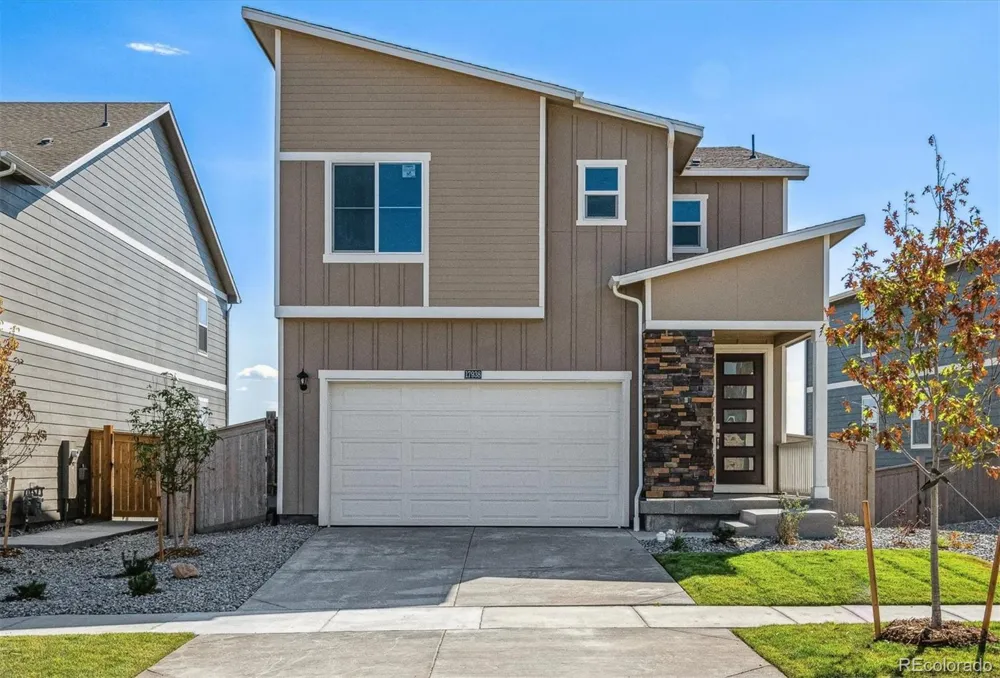 Discover this beautifully designed 2-story former model home that seamlessly blends style, comfort, and convenience. Situated on a premium home-site with a walkout basement. Enjoy your morning coffee while on your deck backing to a greenbelt offering scenic views of the sunrise. Inside, you will find a spacious and inviting layout featuring a large living room perfect for entertaining and relaxing. The kitchen is a cook's dream, complete with a quartz island, stainless steel appliances with gas range, dark cabinetry with subway tile back splash. Upstairs, the generous primary suite offers a peaceful retreat with a luxurious attached bath and a large walk-in closet. Every detail reflects thoughtful design and quality finishes. This home also includes a smart home package with a video doorbell and a smart lock for added security and convenience. Located directly across from the community park, this home offers the perfect blend of suburban charm and modern amenities. Don’t miss your chance to own this exceptional property in a sought-after location! ***Photos are representative and not of actual property***