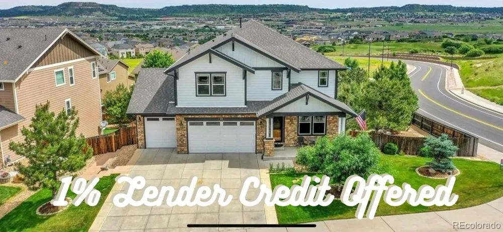 **Red Hawk Golf Course, one of the top-rated golf courses in the state!!** This beautiful home, built in 2012, rests overlooking Castle Rock, Colorado, with scenic panorama views. Granite countertops and cherry wood cabinets throughout the kitchen. The main floor offers solid walnut flooring with a walnut mantle over a custom gas fireplace—five bedrooms and 4.5 bathrooms with engineered wood floors and tile. The finished basement includes bamboo flooring in a basement bedroom, workout room, entertainment, or game room. The walkout door to the large deck includes a hot tub with a custom Pergola and outstanding views of Castle Rock, snow-capped mountains, and a Red Hawk Golf Course. The backyard includes a three-hole putting green. Large three-car garage. Updated and refreshed exterior paint on the home in 2022. Shopping and Castle Rock Outlet Mall is five minutes away. Downtown Castle Rock is a ten-minute drive with great restaurants and entertainment. DIA (40-minute drive) Golf at Red Hawk Golf Course, one of the top-rated golf courses in the state, which is a quick walk away. This outstanding corner property offers a stunning home with majestic views! The seller is offering a one-year home warranty! This gorgeous property is nestled in a quiet neighborhood. Real estate taxes are 15% less than other comparable properties in the community and over 50% less than similar new builds.