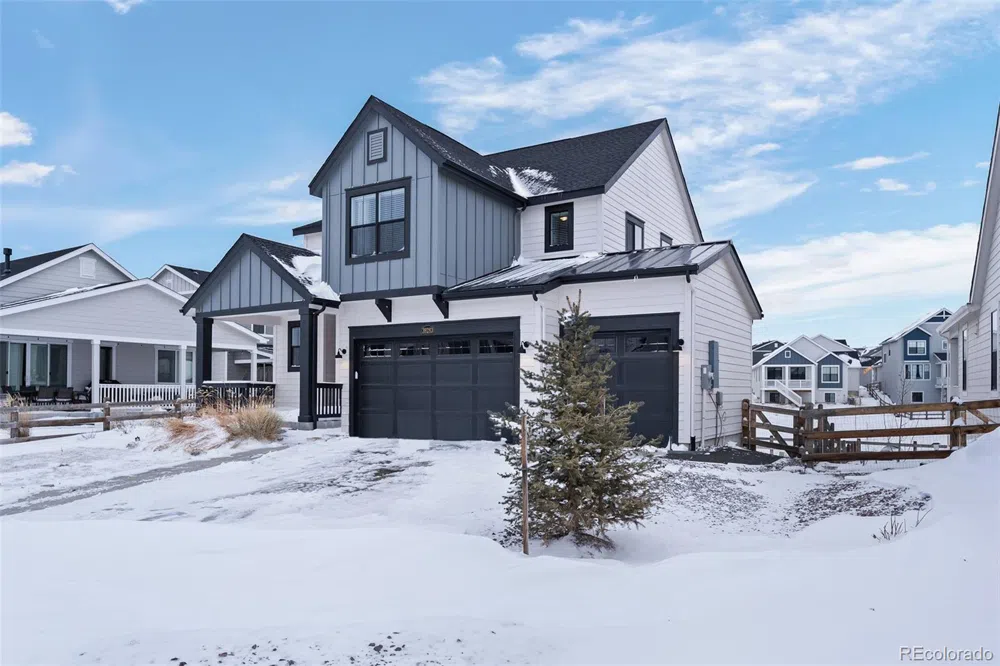 NEW PRICE & $10K IN SELLER CONCESSIONS! Find bliss in this upgraded 2-story with 3-car garage backing to green space in the amazing Independence neighborhood. Offering wonderful street appeal and a lg front porch to enjoy sunrises & your morning coffee, this home exceeds new construction with its designer upgrades including premium appliances, LVP flooring throughout the main level, slab stone countertops, enhanced modern lighting, window coverings, daylight basement & completed landscaping with sprinklers in front & back. Natural light streams through the plentiful windows, granting you the luxury of enjoyment of the green space behind the home. Generous open kitchen boasting a large island free of a sink or cooktop offers more prep & decorating space! Slab stone counters; premium black stainless steel appliances including a counter-depth, glass front InstaView refrigerator with 2 ice makers (1 makes the popular round cubes) & water dispenser, a gas range, dishwasher, microwave, & a pantry make this kitchen a sheer delight. An enjoyable office nook with a built-in desk area/storage cabinets is perfect for work & organization. The main level also features a spacious family room, eating space & a 1/2 bath. Relax on your covered deck overlooking green space. Upstairs, a welcoming primary suite features a coffered ceiling & en suite primary bath with a lg walk-in shower, slab counters, dual sinks, a grooming area & a sizable walk-in closet. Three add'l bedrooms, linen closet, laundry room (W/D included) & a secondary bathroom offering dual sinks & plenty of light round out the upper level. The full unfinished daylight basement is bright & has plenty of space for your needs. This serene Conservation Community will feature over 433 acres of open space, a Community Hub, Stargazer event lawn, clubhouse, pool, fitness center, community garden, dog park, neighborhood pocket parks, and more! Visit https://independencedenver.com/ for info.