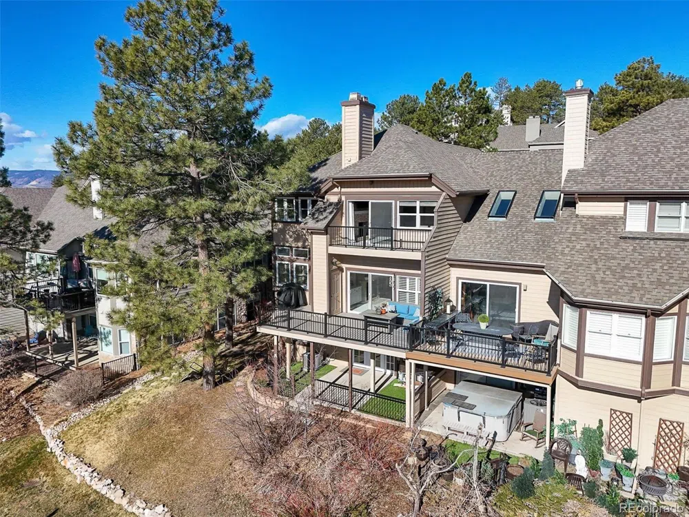 Enjoy maintenance-free living within the Morning Star enclave of 23 homes in in The Village at Castle Pines. This home backs to the community open space and is nestled in towering old-growth ponderosa pines. This stunning updated townhome has 4 bedrooms, 4 bathrooms, 2 laundry areas, a 2 car garage, and a finished walkout basement with a mother-in-law suite. The main floor has a grand entrance with soaring ceilings, formal dining room with updated lighting, gourmet kitchen with new cabinets, quartz counters, gas cooktop, upgraded stainless appliances and hood, pantry, den/hearth room, new hardwood flooring, living room with gas fireplace, walk out to the new trex deck with iron railing, ½ bathroom, and access to the 2 car garage with epoxy flooring. Upstairs features a private primary suite with vaulted ceilings, access to the private upper deck, 2-sided fireplace, office with built-in shelves, his and hers custom walk-in closets with a new laundry area, updated 5-piece primary bathroom, 2 additional bedrooms, and an updated ¾ bathroom. The finished walkout basement has can be used as private living quarters with a rare second full kitchen, family room with built-in shelves, spacious 2nd primary bedroom with an ensuite custom walk-in closet and updated ¾ bathroom with heated floors, laundry area, and storage. New updates include the chef’s kitchen, new carpet, refinished hardwood flooring, layout that has been opened up, new trex deck and iron railing on all levels, new lighting, new windows, updated bathrooms, additional linen closet and laundry area in the primary bathroom. Enjoy resort-style living with private entrance gate, 24/7 on-demand security. You can walk to the adult fitness center, enjoy the 3 neighborhood swimming pools, tennis courts, pickle ball courts, picnic pavilions, miles of hiking trails, and 2 Jack Nicklaus designed golf courses. Curate your dream Colorado lifestyle and enjoy luxury living at its finest! Request a private showing.