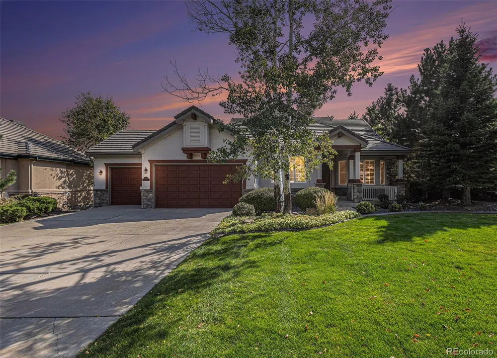 New interior paint, new carpet throughout and brand new backyard deck! Maintenance free lifestyle - perfect for "Snowbirds"! Welcome to this spectacular ranch style home in the highly desirable and prestigious Castle Pines North gated community. As you enter the foyer, you will be greeted by gleaming hardwood floors and high ceilings. You'll notice the plantation shutters, 8 foot doors and new carpet throughout the main floor. The family room features a 15 foot vaulted ceiling, gas fireplace, ceiling speakers and a built-in shelving system. The southern wall of windows is perfectly designed to take in the gorgeous views of the adjacent rolling golf fairways and Colorado foothills! The kitchen includes granite counter tops, plenty of beautiful cabinetry, pantry, eating area and a stainless steel double oven, dishwasher, new microwave and new a Bosch gas stovetop with downdraft ventilation. Adjacent is the formal dining rom with large bay windows and recessed ceiling. Down the hall is the spacious master bedroom featuring a vaulted ceiling, walk in closets and an en-suite 5 piece bath with extra large tub. Across is another bedroom and en-suite full bath. The office is separated by French doors and includes a built in bookshelf. You will love having the laundry on the main floor! The basement has 9 foot ceilings and offers a massive great room with kitchen sized wet-bar, two more over sized bedrooms and full bath. There is also plenty of storage available. Step outside with your friends and family on the brand new 400 sq ft composite wood-style deck, which overlooks the Castle Pines fairway, and bring in all of the gorgeous views of the Rocky Mountains and Pikes Peak. This house is definite luxury and is perfect for entertaining! Don't forget to see the three car garage and the shelving units. HOA includes pool and clubhouse use, 5 min drive, Swim Club at Daniels Gate. This amazing home has it all...you'll love it! Video and virtual walkthrough available