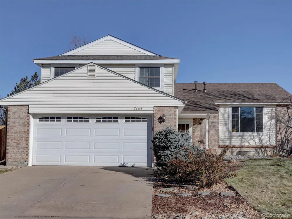 Welcome to this delightful 3-bedroom, 2-bathroom two-story home, packed with recent updates for worry-free living: NEW paint, NEW carpet, and a NEW Class 4 shingle roof. Perfectly situated in the highly desirable Stony Creek neighborhood, this home offers convenience with walking-distance access to Stony Creek Elementary and Deer Creek Middle School. Soak up Colorado’s sunshine in this southwest-facing home, and enjoy outdoor living in the oversized backyard. The covered patio is perfect for quiet evenings or hosting friends. Inside, gather around the cozy fireplace and relish the seamless flow between the kitchen, dining room, and living room, designed for easy living and entertaining. The upper level features three spacious bedrooms and a full bathroom. On the main floor, you'll find a convenient 3/4 bathroom and a laundry room. The unfinished basement provides flexibility—whether you envision a game room, home office, or extra storage. Additional perks include new fencing, a backyard storage shed, perfect for lawn tools, and a two-car garage with ample room for vehicles, tools, and bikes.