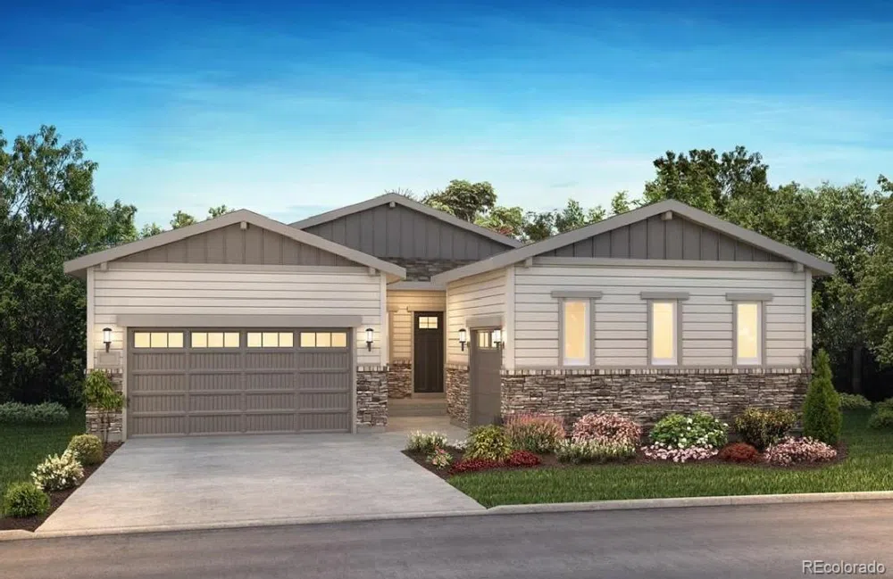 Gorgeous one story walk out home in the Canyons backing to open space with 5 bedrooms and 4.5 bathrooms, study, finished basement with wet bar, covered deck and and 3-bay garage. Design finishes include luxury vinyl plank flooring in Bedford Oak, tile floors at the baths and laundry room, Della Terra New Venatino Beige engineered stone kitchen counters with full back splash, full height stacked stone fireplace surround, and KitchenCraft Salem cabinets in Alabaster and Cortado. Please contact a community representative for complete details. The Canyons Metropolitan Districts provide various services to the property and in addition to the estimated taxes, a $30 per month operations fee is imposed.