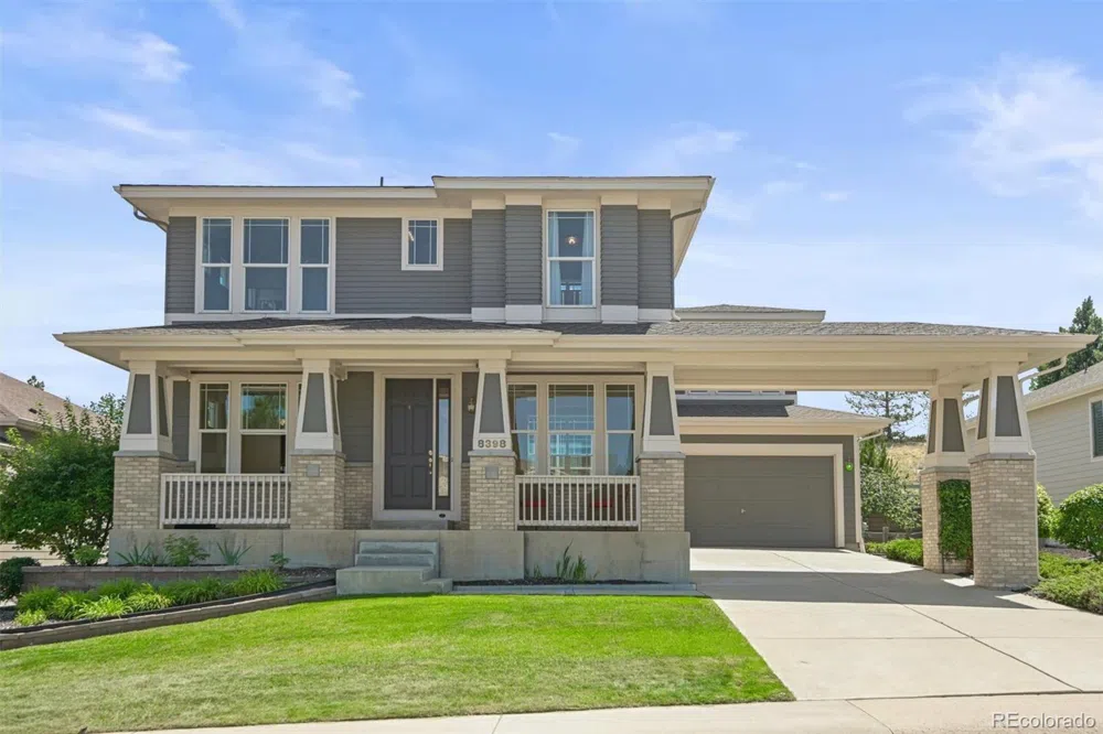 Welcome home to Winter Berry Drive, a meticulously maintained 2-story home in Castle Pines North boasting modern craftsman architecture and over 3,000 square feet of finished living space. A beautiful covered front porch and a porte-cochere (which leads to a tandem 3-car garage), add great curb appeal to this smartly designed property. Stunning hardwood floors, coffered ceilings, architectural details, and a neutral palette unfold to both formal living and dining spaces, ideal for entertaining. A grand 2-story family room with a dual-sided fireplace and abundant light invites the outdoors in. The eat-in kitchen features an oversized center island, ample 42’ cabinetry, a gas range, and a butler’s pantry. Step out the large glass slider to a huge deck overlooking a private yard backing to open space. Retreat to your spacious primary suite including a large walk-in closet and 5-piece ensuite bath. The light-filled second floor features a Juliet balcony in the bonus loft space, a catwalk to two secondary bedrooms with ensuite baths, and a large laundry room with built-in cabinetry, counter space, and a utility sink. Additional features of this turn-key home include a main floor office with a fireplace, a plumbed unfinished basement, and a secondary entry with a wood deck by the tandem garage. Castle Pines North offers many resort-style amenities including trails, a community pool, a park, tennis and basketball courts. Ideally located within minutes of Daniels Park, Castle Pines Golf Club, and the Ridge at Castle Pines North, along with Douglas County schools, shopping, dining, and more, this property is truly a prize find in the heart of Castle Pines North.