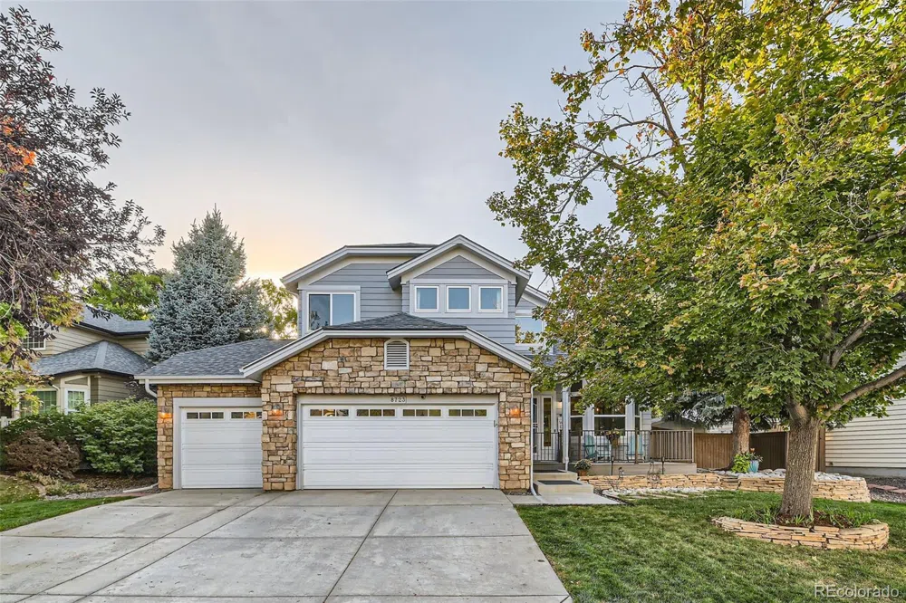 Welcome to this lovely 2 story home nestled in a quiet Eastridge neighborhood. Before even stepping inside, admire the custom front steps, Trex decking porch with railings and gate and the lovely landscaping. Once inside, you're sure to be impressed by the high ceilings and gorgeous Hardwood floors. Freshly refinished handrails, trim and wood doors throughout. Cathedral ceilings in the Living room offer an abundance of natural light and open flow to the Dining room. The eat-in Kitchen has new stainless appliances and the prep island is moveable. Built in buffet could be a great coffee bar! In the Family room, notice the gas fireplace makeover that is just beautiful! Now, step out back to your own oasis...a yard that can be your tranquil retreat with the impressive stone Waterfall and pond feature, Trex deck, extended stamped concrete patio w/ pergola, mature plants and trees plus 2 raised garden beds. Back inside, you'll also find the laundry room w/ utility sink and an updated 1/2 bath. Head upstairs to view a large, vaulted Primary suite with 5 piece bath & walk-in closet. The 3 secondary bedrooms are spacious, have new ceiling fans and fresh paint. *Brand NEW Basement is sparkling!* You'll be the first to enjoy this area! Space for fitness center, office, family room plus a 5th bedroom and a gorgeous 3/4 bathroom! The incredible 3 car garage is finished with insulation, a vent system, 220V, heater and exterior access. Two yr old Water Softener is included. Per Sellers: Electrical Panel 2020. Furnace is less than 2 years old and the Water Heater is less than 3 years old! Leased Solar Panels added 2020. Storage shed in yard for lawn care items. The windows were new in 2018 and come with a transferable warranty. Roof and siding replaced in 2015. Highlands Ranch offers miles of paths and trails, 4 Rec Centers with fitness centers and swimming pools, restaurants and shopping.